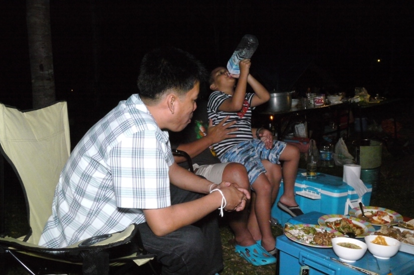 ถึงเวลาต้องร่ำลา น้าหมูกับน้าแหม่มไม่ได้เตรียมเต้นท์มานอนด้วย บ้านอยู่ใกล้ต้องกลับไปนอนที่บ้าน