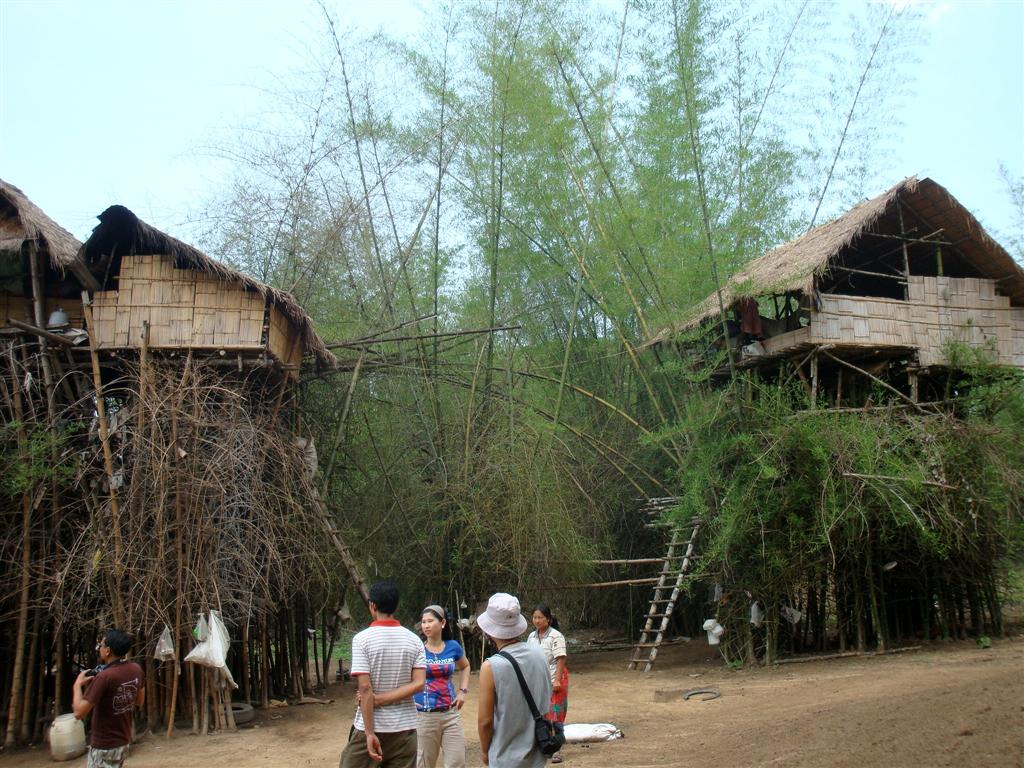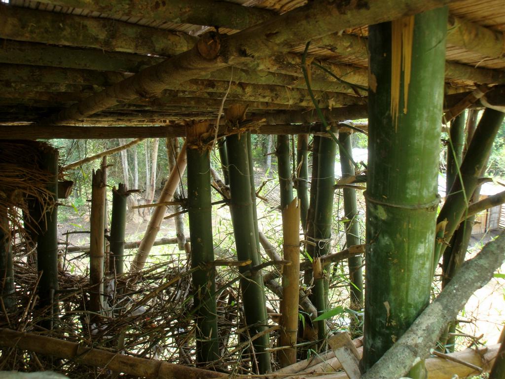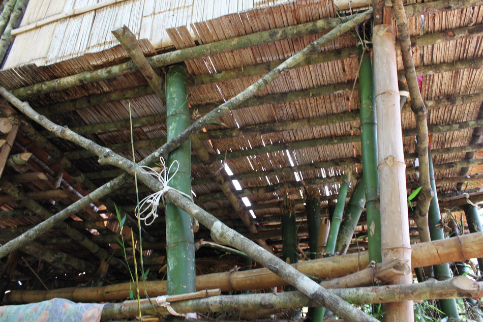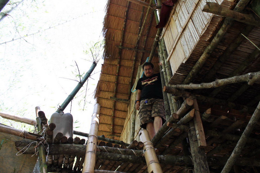 นี่ล่ะครับบ้านยอดไผ่ จัดสร้างโดยการปีนขึ้นไปตัดบนยอดไผ่ ช่วงกลาง ๆ
