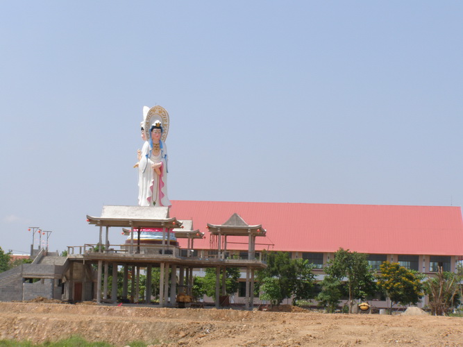 รูปปั้นเจ้าแม่กวนอิม ประดิษฐานอยู่ภายในวัดใกล้ๆ กัน