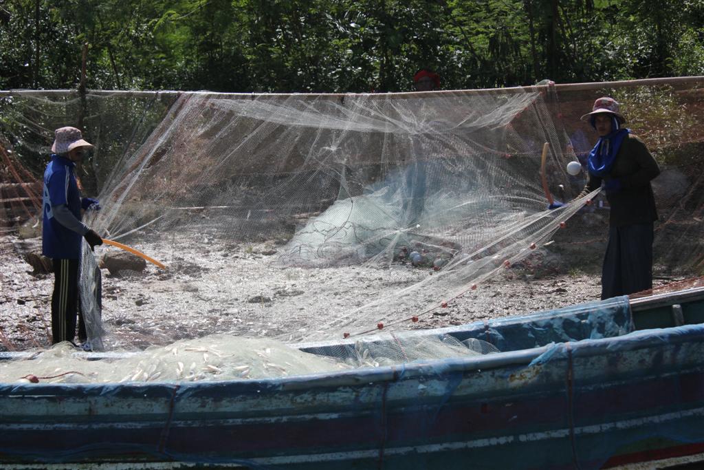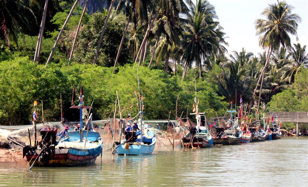 เข้าท่าเทียบเรือชายหาดนางกำ กลุ่มเรือแขกตีอวนปลดปลาเล็ก ๆหลายลำเรือ