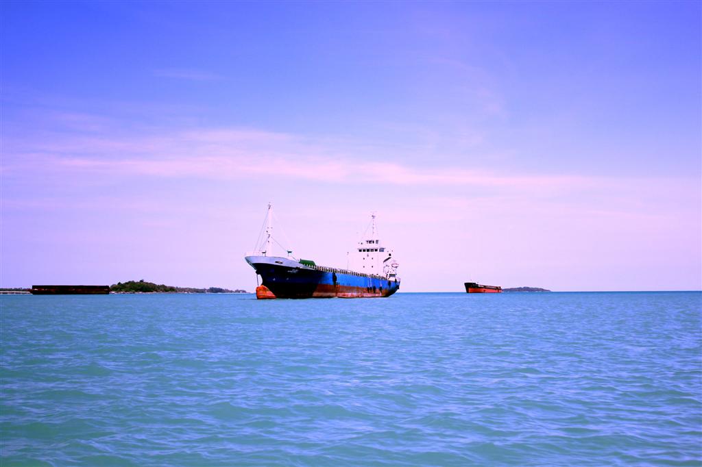 ผ่านกลุ่มเรือภาณิชย์ ขนาดใหญ่หน้าท่าเรือ ซีทราน จอดลอยลำอยู่