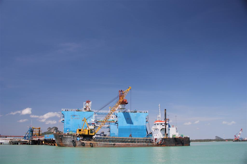 ท่าเรือซีทราน เรือแพซ่อมบำรุงมีเครนจอดประจำอยู่