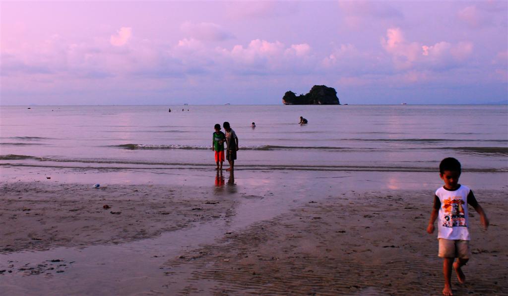 เด็กเล๋กวิ่งเล่น จับลูกปลาเล็กในร่องคลื่นทราย อย่างสนุก สนาน