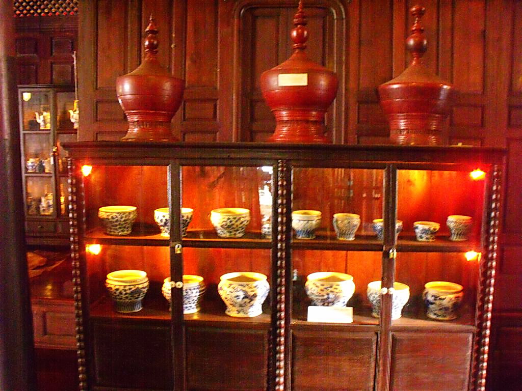 ศาลานี้ นอกจาก มีพระพุทธรูปแล้ว ก็ยังมี ถ้วยชามโบราณ เก็บไว้ให้ได้ดู ได้ศึกษากันด้วย