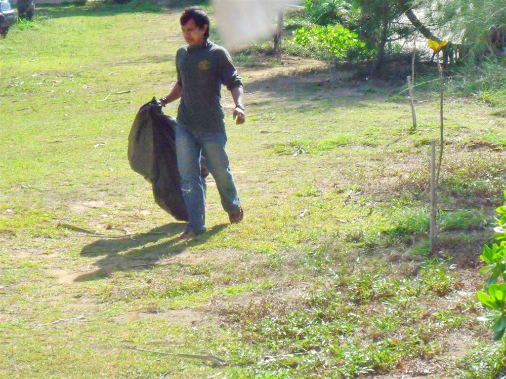 พร้อมๆกับ เจ้าหน้าที่ 5 คนเดินปูพรม เก็บขยะ ใส่รถที่เห็น ดังนั้นนักท่องเที่ยวพึ่งระวังเรื่องทิ้งขยะให้มาก