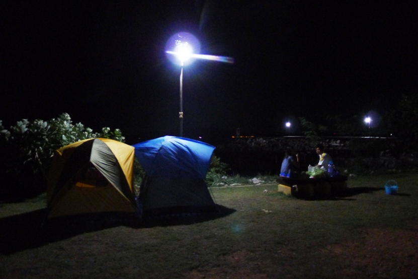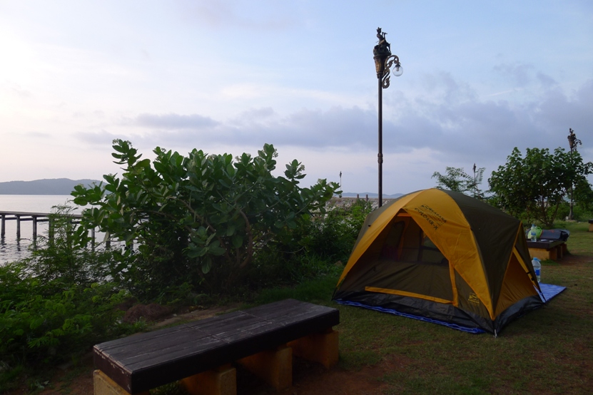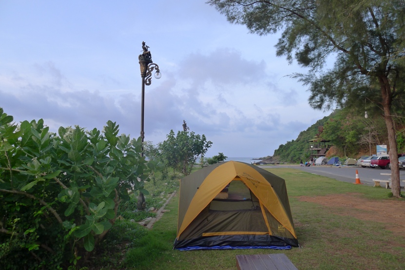 กางเต้นท์ริมทะเล ริมเสาไฟนี่แหละ เหมาะเลย ลมพัดเย็นสบาย....