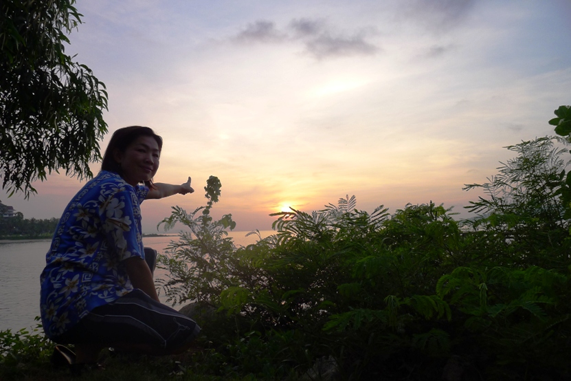 น้าตั๋งไปนั่งปักหลักรอเก็บภาพพระอาทิตย์ยิ้มแฉ่งตรงกลางสะพาน