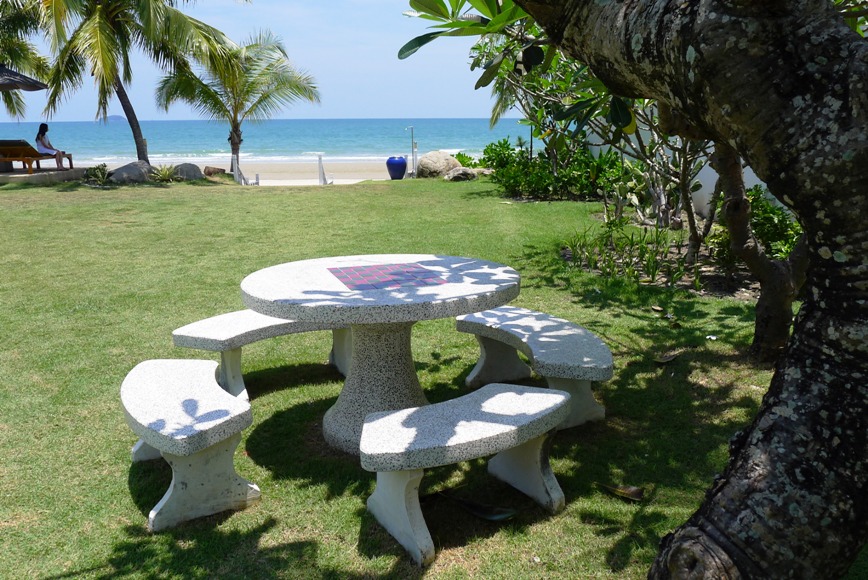 มีม้าหินอ่อนนั่งเล่น น้องไข่มุกจองไว้แดดร่มลมตกเราจะมาเล่นหมากฮอสกัน