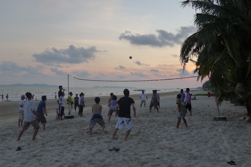กลุ่มคนซ่อมเครื่องบินกำลังแข่งวอลเล่ย์บอลชายหาด