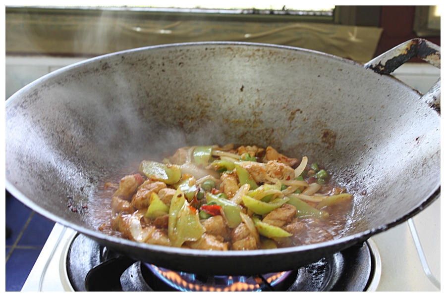 สด ๆ ร้อน ๆ ครับ อกไก่ผัดพริกหยวกน้ำพริกเผา ฝีมือผมเองครับ