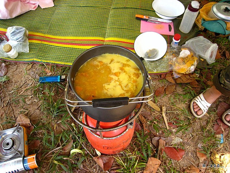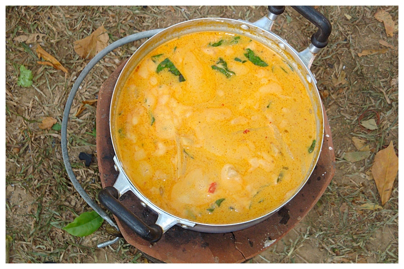 นี่ก้อฝีมือข้าน้อย แกงเผ็ดไก่หน่อไม้ กินกลางป่า