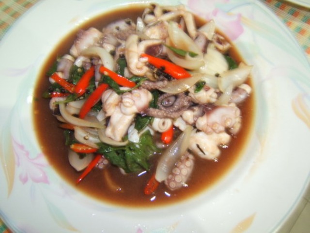 ต้มยำปลาหมึกครับ ตอ้งทนทานหนังกะติ๊กเพราะทานกุ้งไม่ได้อะ.....