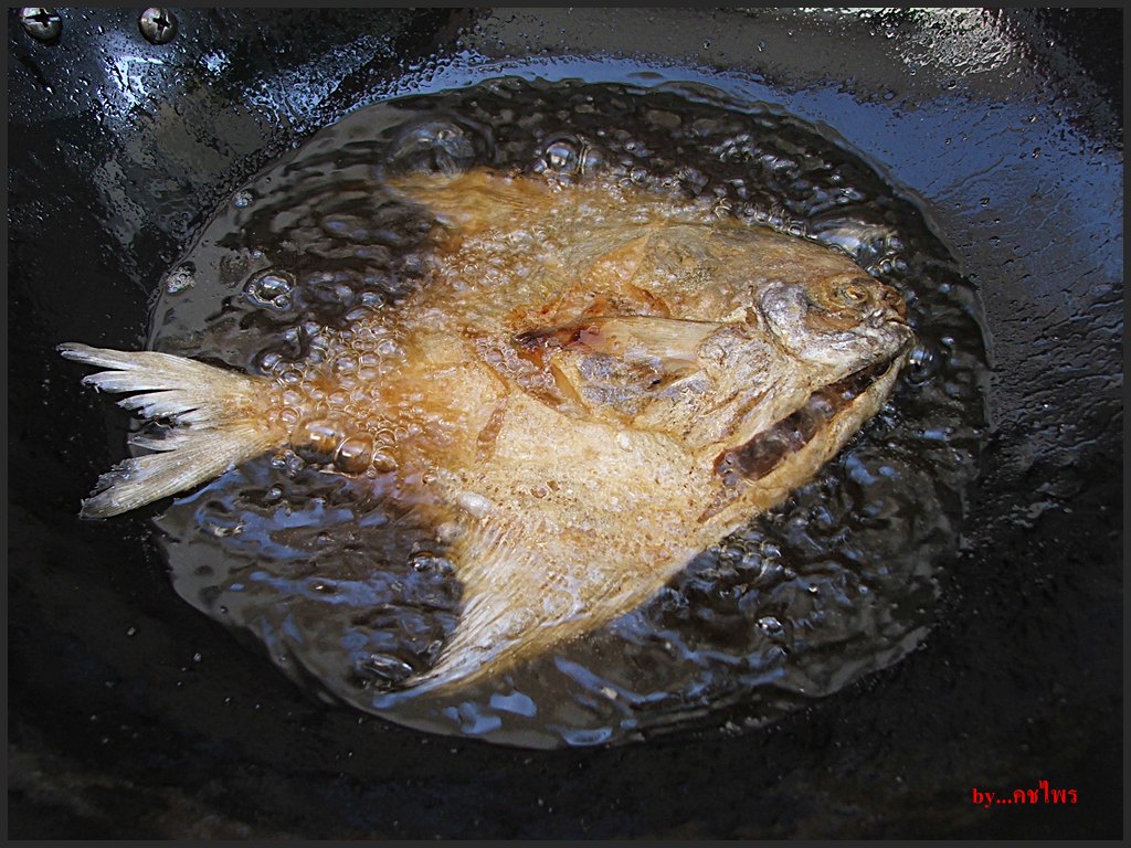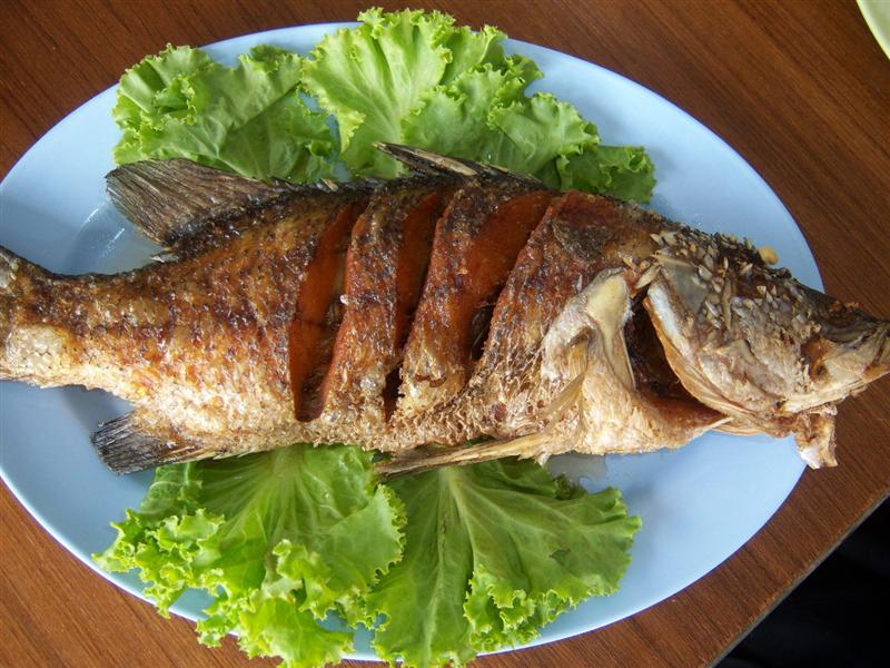 ปลากระพงทอด/น้ำปลามะม่วงสับ