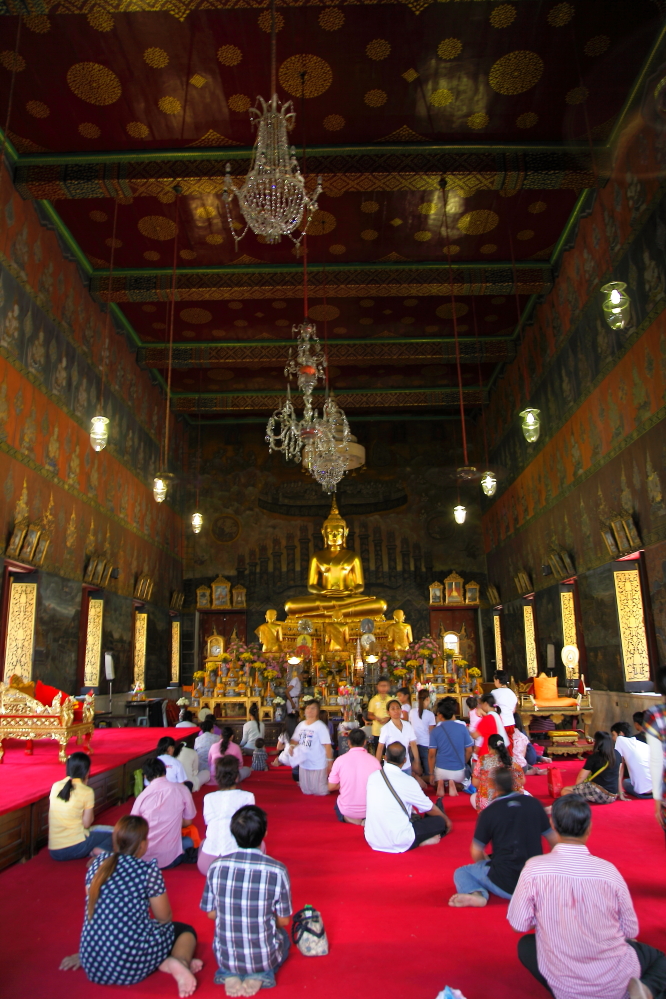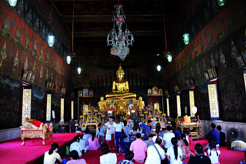 บรรยากาศภาพในพระอุโบสถ มีชาวพุทธเข้ามานมัสการกันอย่างเนืองแน่น
