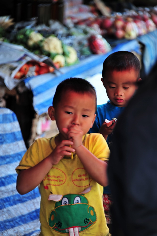 เด็กน้อยชาวไทยภูเขากำลังสนุกสนานกับการวิ่งเล่นและแย่งกันเป่าลูกโป่ง