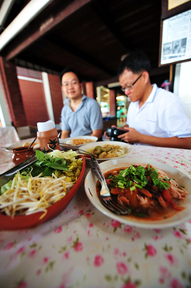 อาหารกลางวันแนะนำโดย Mr. P ขนมจีนป้าออน (หากจำไม่ผิดนะครับ) มีสาระพัดน้ำราดครับ ผมทานขนมจีนแกงไก่