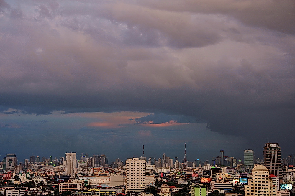 ช่วงหัวค่ำ กทม.เมฆฝนครึ้มทะมึนมาเป็นกลุ่ม
