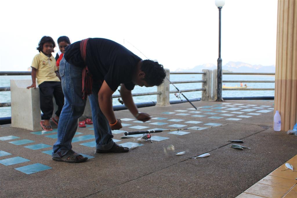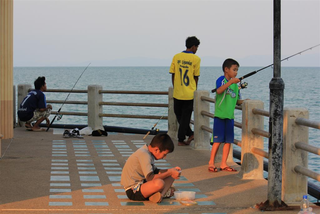 ชาวบ้านไปหากิน ตกปลาบ้างทอดแหปลากระบอก ตลอดแนวสะพาน