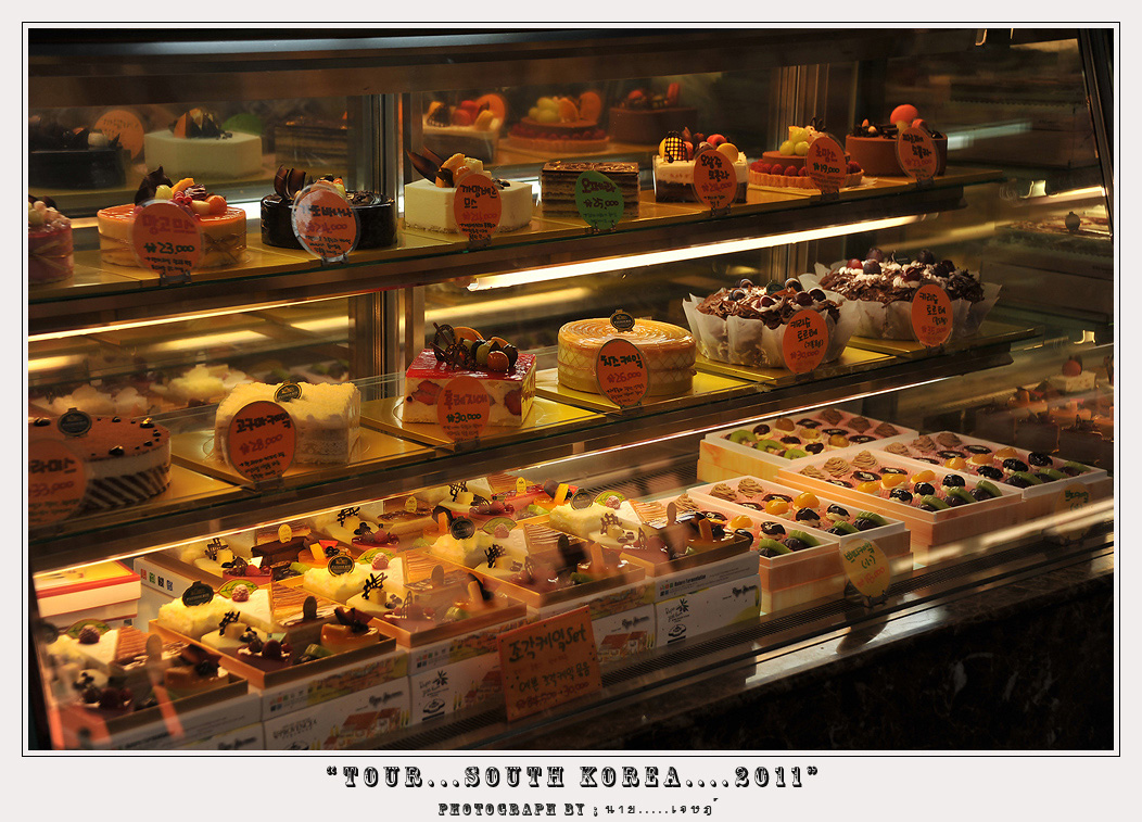 เค๊กเกาหลี ตัวเลขที่เห็นนั่นคือราคาเป็นวอนครับ 1000 วอน = 30 บาท