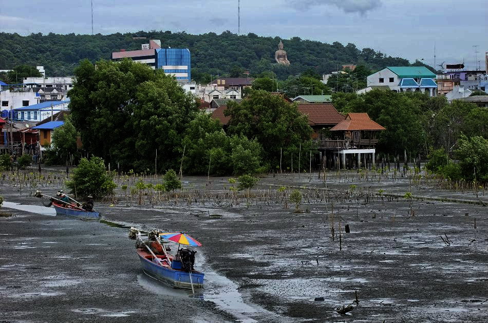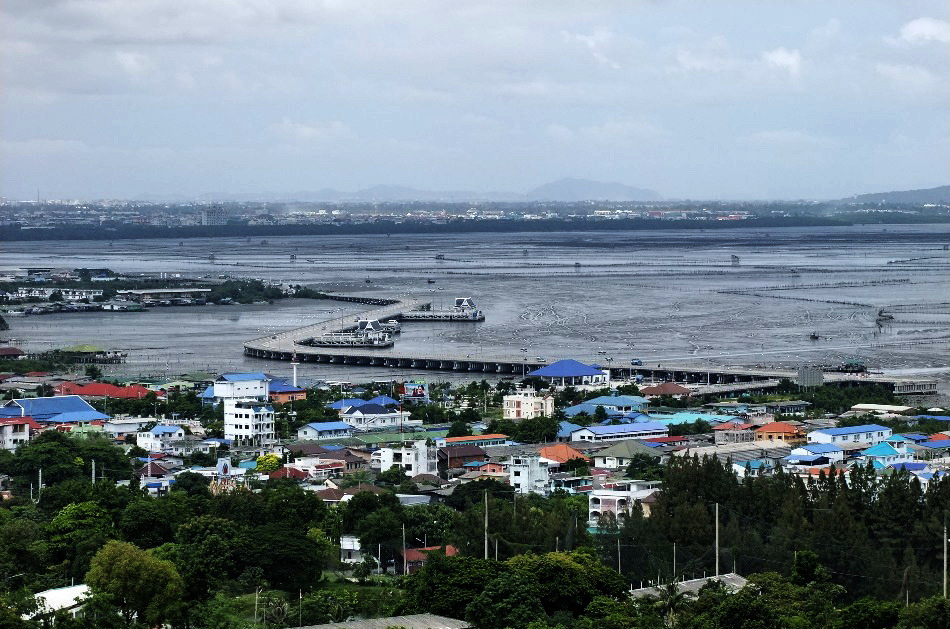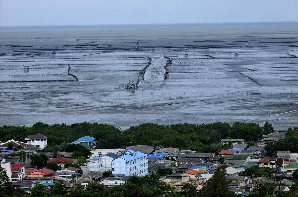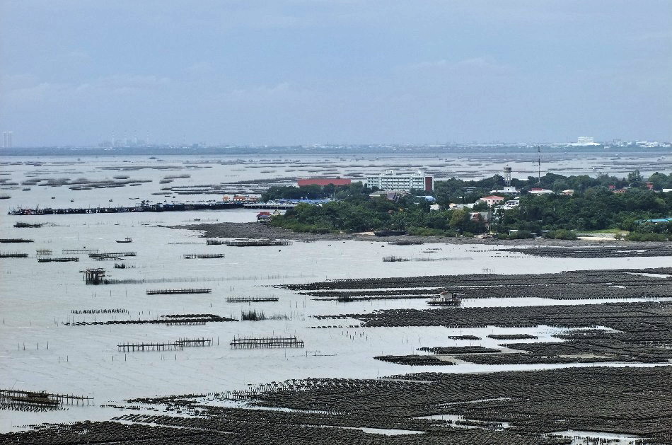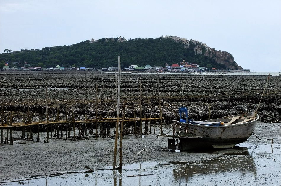 ด้านซ้ายมือเราก็จะเห็นเขาเลี้ยงหอยตลอดเส้นทาง