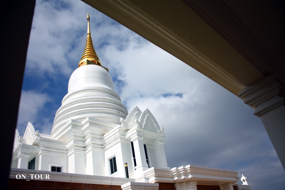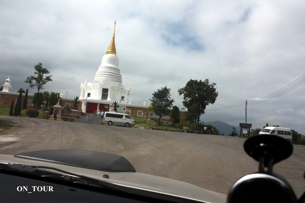 ระหว่างทางตอนกลับผมมองเห็นเจดีย์สีขาวอยู่บนเขาเห็นสวยดีเลยกลับรถขับเข้าไปเที่ยว