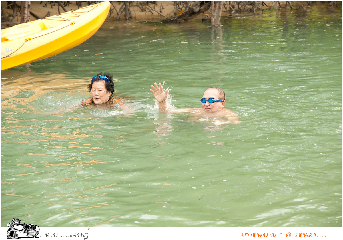 จากนั้นก็มาต่อกันที่อ่าวเขาควาย ลักษณะอ่าว จะโค้งยาวประมาณ 4 กิโลเมตร คล้ายๆเขาควาย ลงอ่าวปุ๊บฝนก็ลงเลย ต้องรีบแว๊นตากฝนกันกลับ
