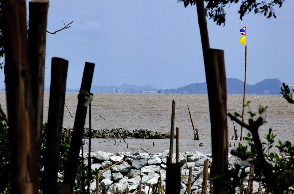 เพราะความโค้งของทะเลเป็นอ่าว..อยู่สมุทรปราการจึงมองเห็นจ.ชลบุรีเกือบตลอดแนวชายทะเล
