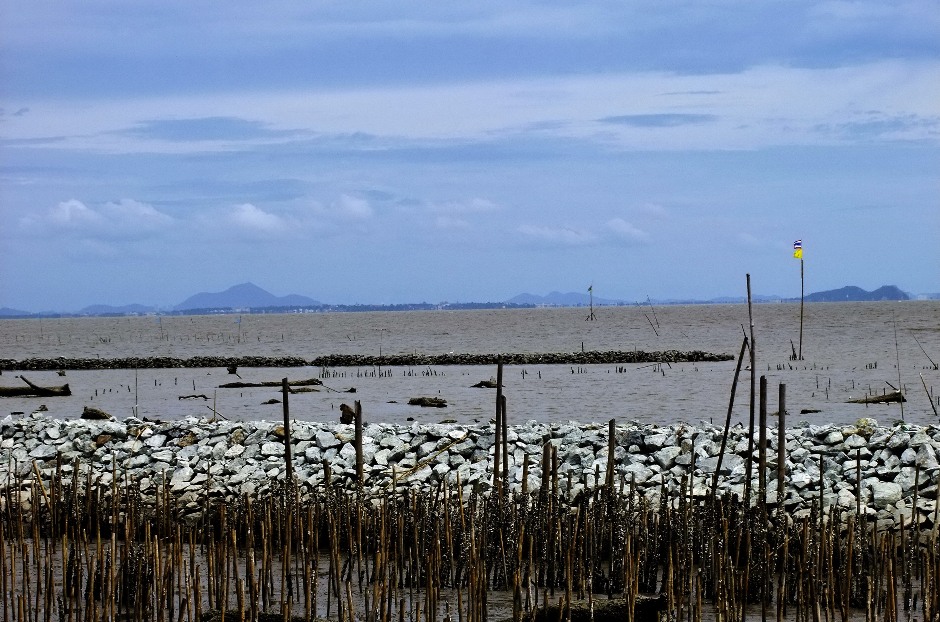 ตลอดแนวชายฝั่งทะเลจากคลองตำหรุชลบุรี-สมุทรปราการยาวไปเกือบถึงเพรชบุรีไม่มีหาดทรายเลย..เป็นชายเลนตลอด..น้ำขุ่นเป็นสีดำเลย