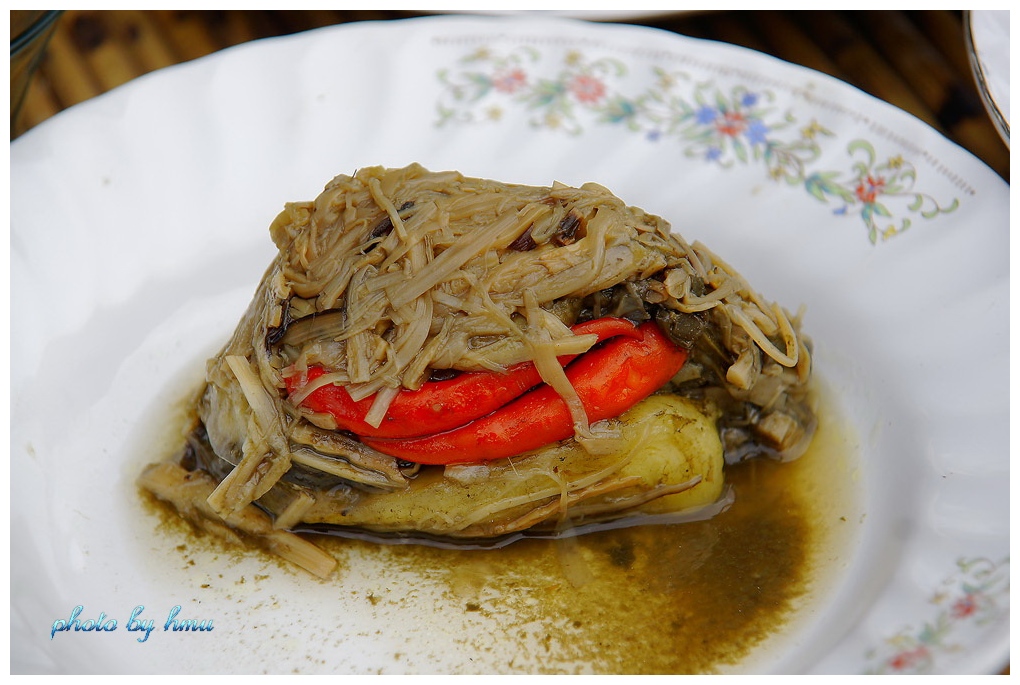 8.หมกหน่อไม้ใส่ปลาเทโพ (อีสานเรียกปลาปึ่ง)