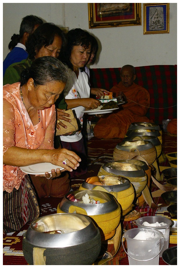 ผู้คนแถบนีจะตักบาตรข้าวเหนียวหน้าบ้านตอนเช้า วันนี้มาตักบาตรที่นี่เลยครับเราเตรียมของไว้ให้ครบเลย