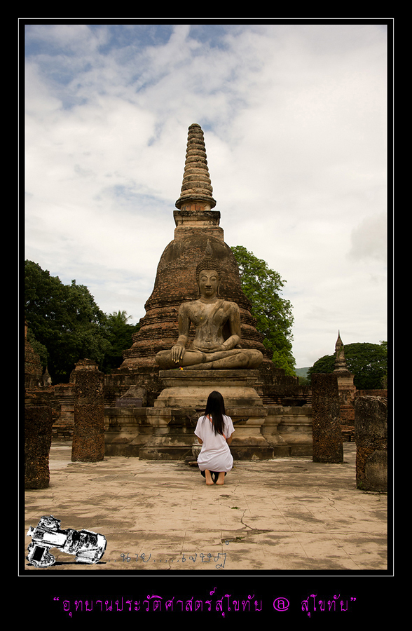 เราเดินทางถึงเมืองสุโขทัยเกือบๆทุ่ม ตกลงว่าเราพักกันในเมืองสำหรับคืนนี้ เป็นไปตามคาด นอนในเมือง มีห้องพัก ฝนไม่ตกซักกะเม็ด หึหึหึ แล้วเช้าก็เดินทางออกไปเที่ยวอุทยานประวัติศาสตร์สุโขทัยกัน