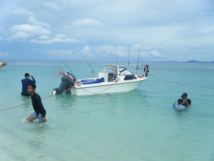 ตอนออกเดินทางแดดก็ยังจ้าอยู่เลยค่ะ! แต่พอถึงเกาะ..กล่มเมฆฝนไม่รู้มาจากไหน ภาพก็เลยมัวซัวอย่างที่เห็นแหละค่ะ!