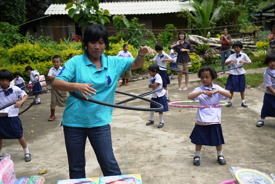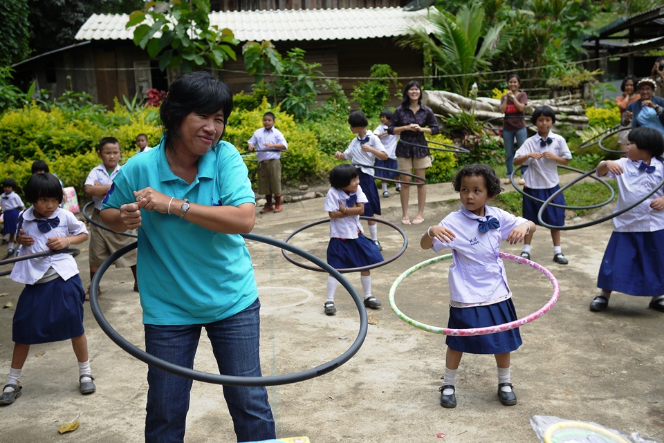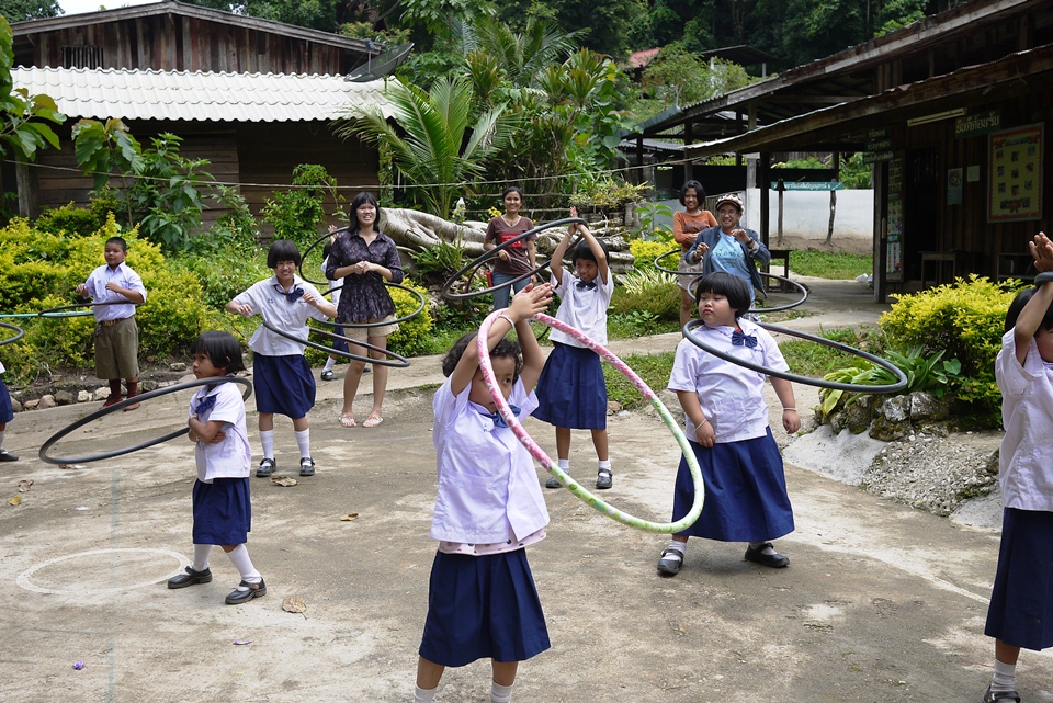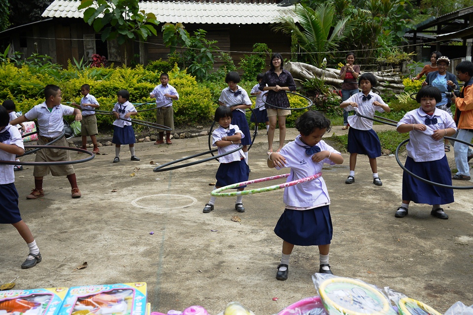 เด็กๆได้ฮูลาฮูปก็เต้นโชว์ซะเลย คุณครูบอกว่าที่โรงเรียนได้รับบริจาคมา 2 อัน เด็กๆเปลี่ยนกันเล่น ตอนนี้พังไปแล้ว ดีที่ได้มาอีกชุดใหญ่ ขอบคุณมากคร๊าบ