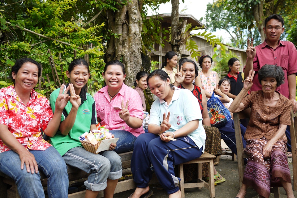 ชาวบ้านก็ดีใจ บอกให้ทำท่าสู้ ๆ มีเขินนิดหน่อยแต่สุดท้ายก็ตามใจป้าแอ๋วค่า