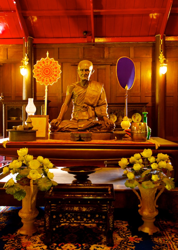 รูปหล่อ "หลวงพ่อกล่อม" ผู้ริเริ่มอนุรักษ์ การแสดงหนังใหญ่