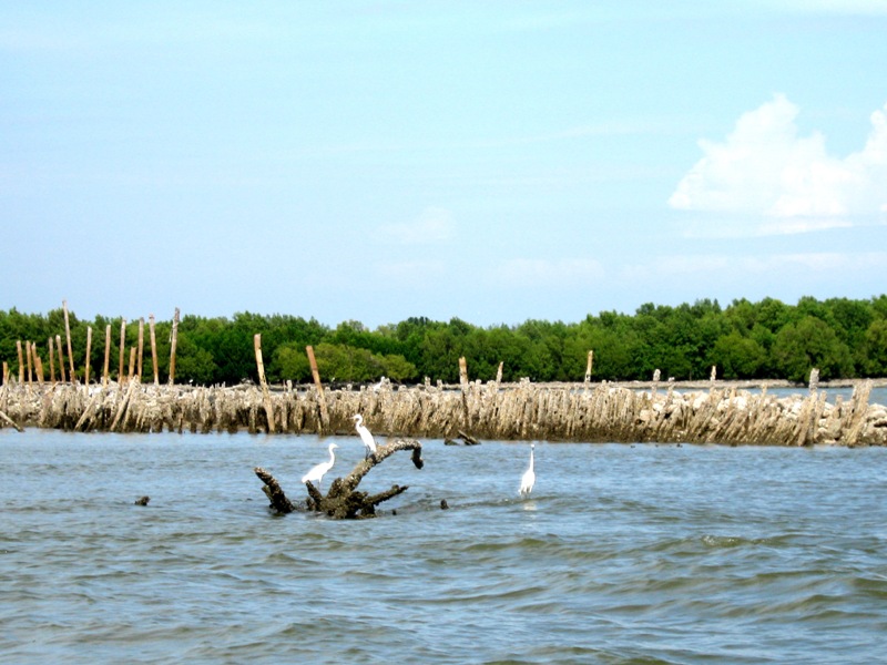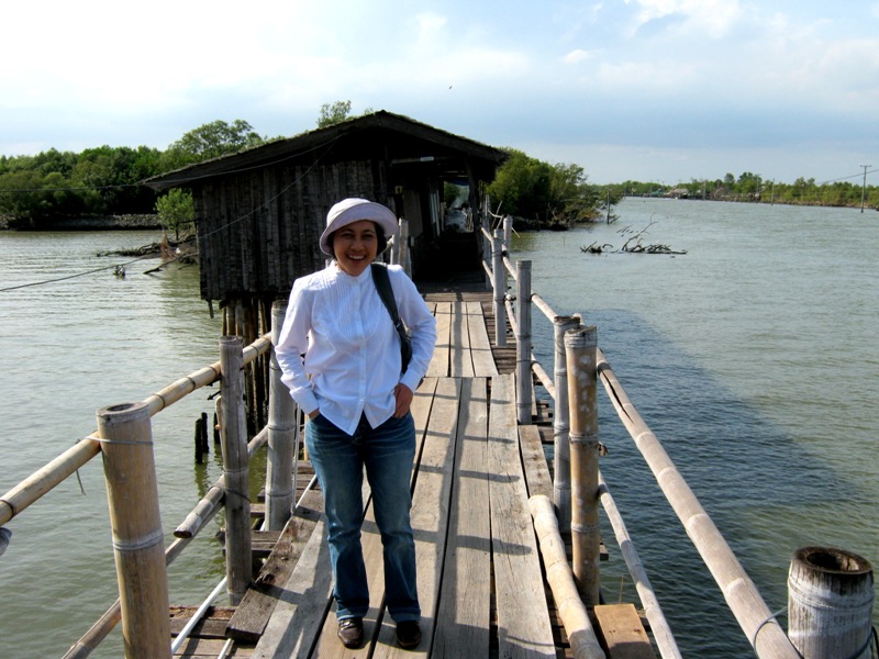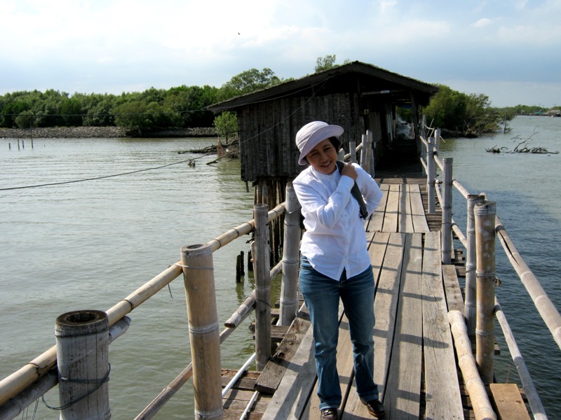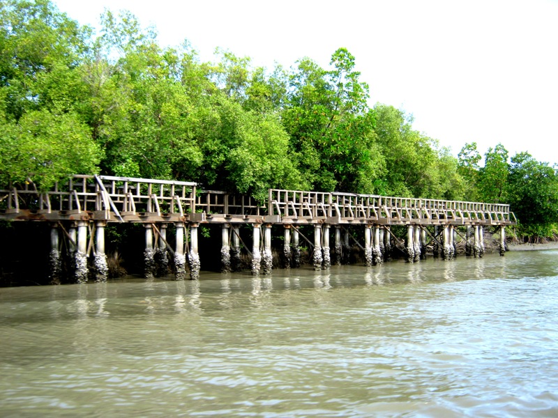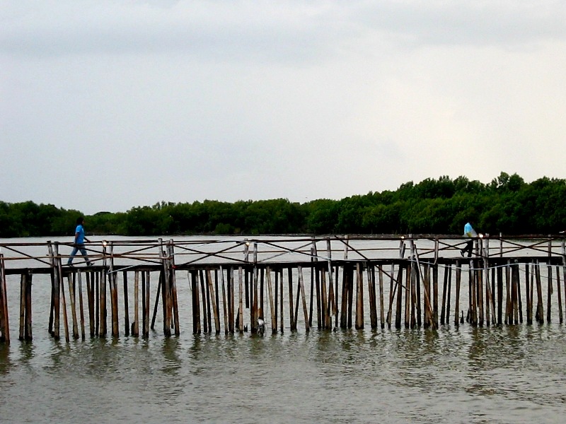 ผ่านแนวสะพานเดินชมป่าโกงกางในอดีต ที่ ทรุดโทรมมาก