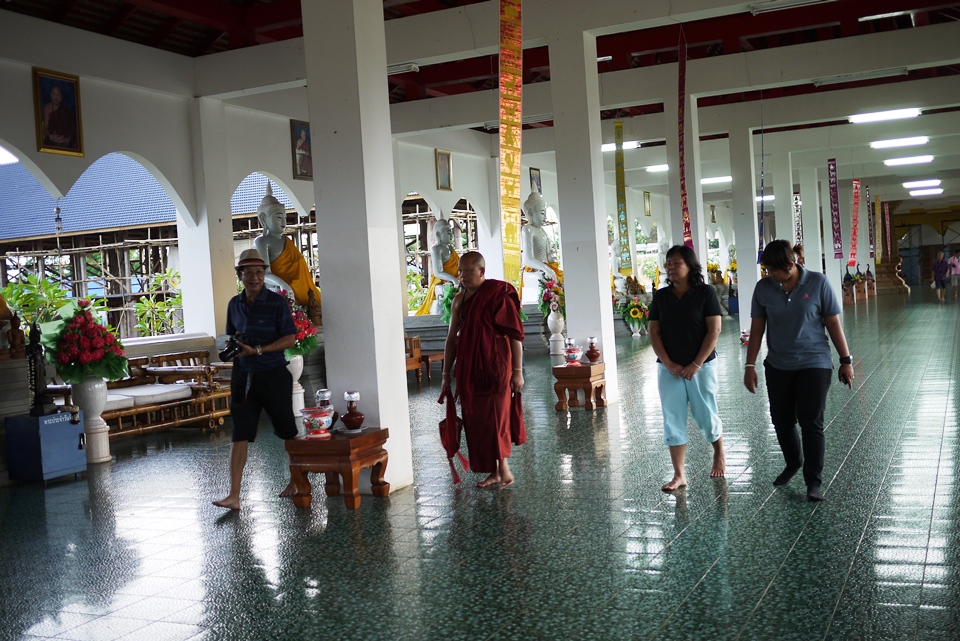 ใกล้ค่ำแล้ว ทีมเรายังเดินหน้าต่อ ไปที่วัดบ้านเด่นครูบาเทืองกันต่อค่ะ