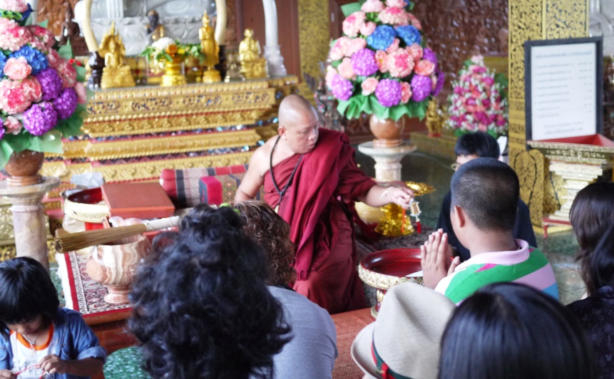 คณะเราโชคดีมีบุญที่สุด เจอครูบาเทืองซึ่งปกติท่านจะไม่ค่อยรับแขกและสมถะมากๆค่ะ ท่านจะรดน้ำมนต์ให้กับคณะเราค่ะ