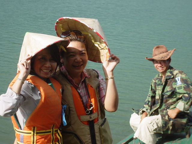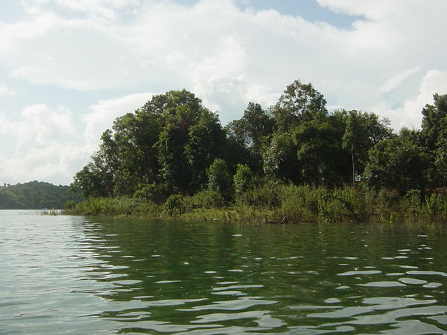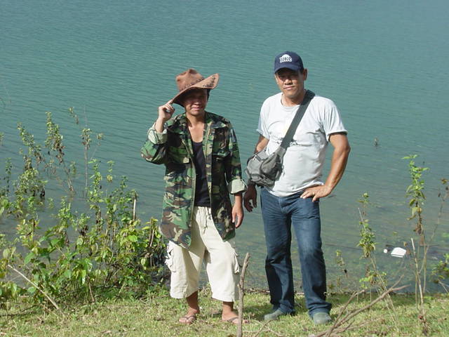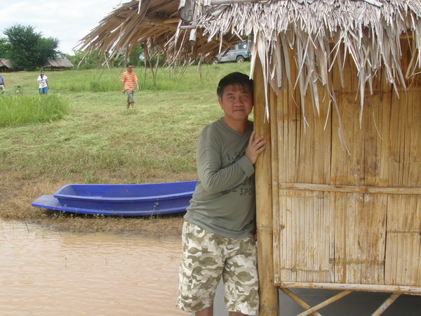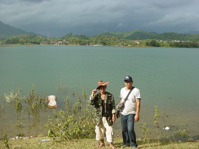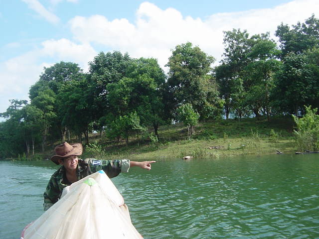 ชาวบ้านที่พาไปกำลังอธิบาย ว่าบริเวณตรงนี้คือต้นน้ำเขื่อนน้ำงึม สามารถเอาเรือวิ่งออกไปประมาณ3ชั่วโมง ก็ถึงหน้าเขื่อน
