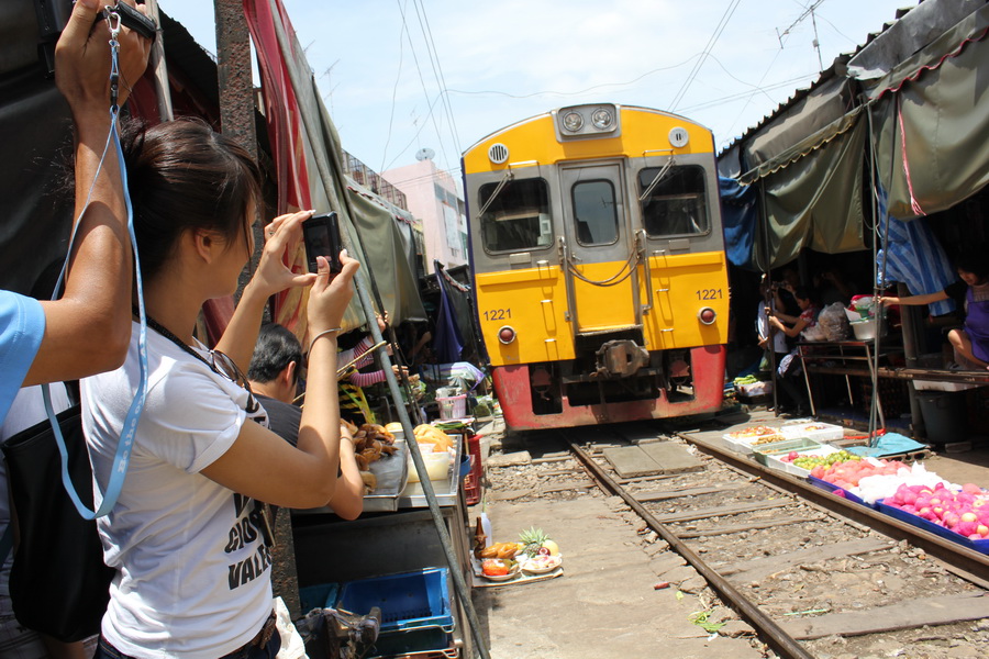 การเดิน การยืน เพื่อเก็บภาพ ก้ออยากให้เกรงใจ แม่ค้าพ่อค้า เค้าบ้าง บางแผงที่เค้าแบบกะดิน เค้าไม่ต้องเก็บสินค้าเพราะรถไฟผ่านได้