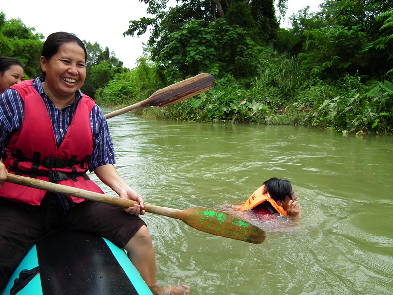 หนูน้อยคนนี้กำลังสนุก แต่เจ้าหนุ่มน้อยนี้สิบ่นคิดถึงแม่ก็พ่อเอาแต่ลอยคอ ล่องอยู่ในน้ำไม่สนใจลูกเลย