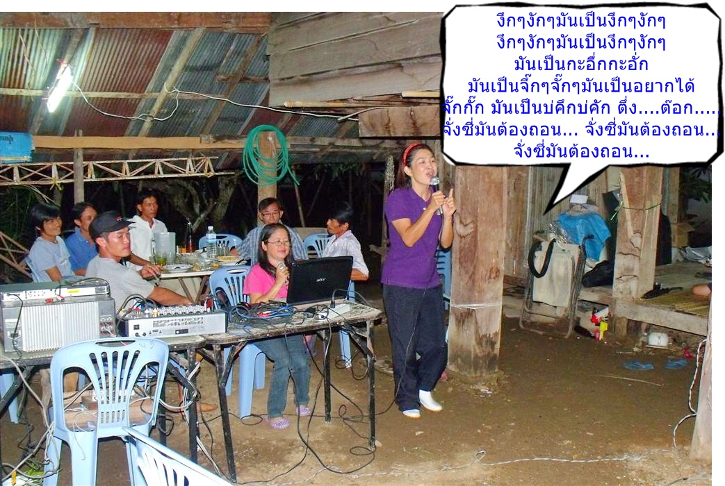 ป้าแอ๋วกำลังร้องเพลงให้พวกเราฟังอย่างมีความสุข