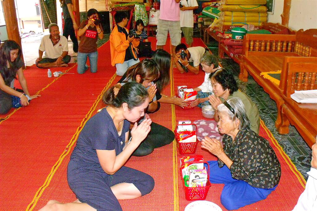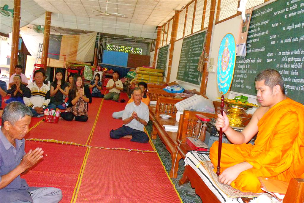 ที่สุด ก็ ได้รับการผูกข้อมือต้อนรับกันถ้วนหน้า ด้วยการอาบสุข อิ่มบุญ กันทุกคน