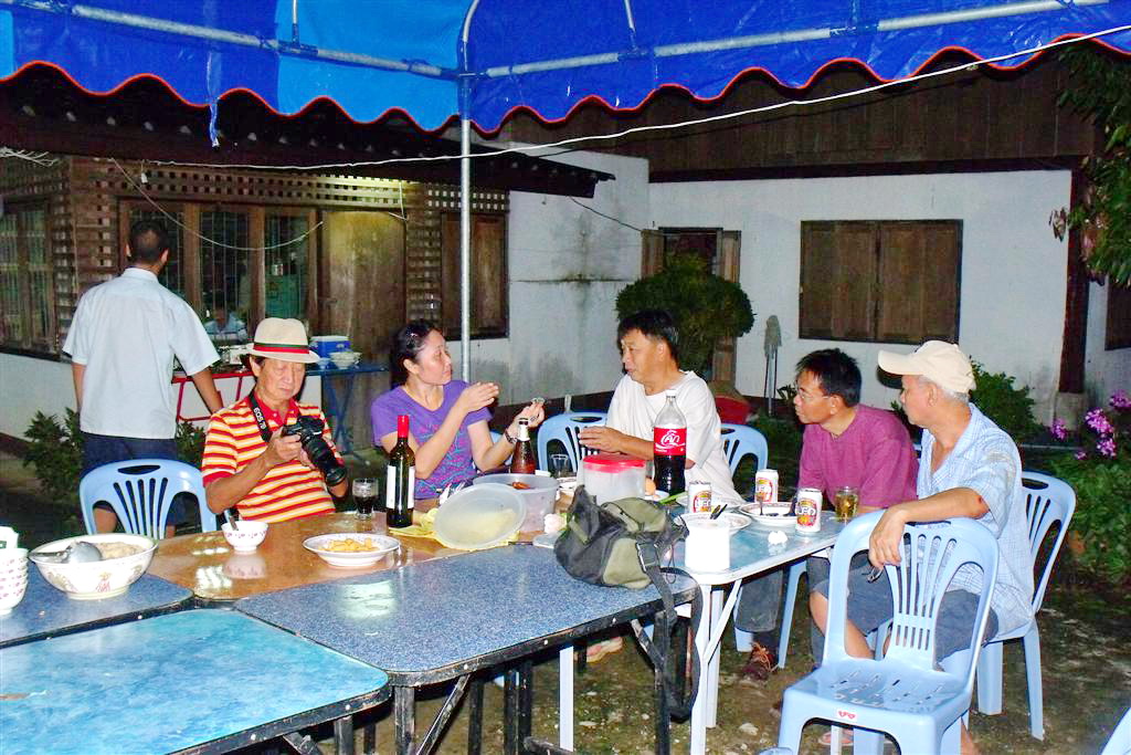 ป้าแอ๋ว เจ้าถิ่น ค่อยๆพยุงลุงม้า แข็งเข่า ไม่ค่อยดี.....บอกแล้วให้กินเบียร์เหมือนลุงนิด ก็ไม่เชื่อ รักษาได้ทุกโรค