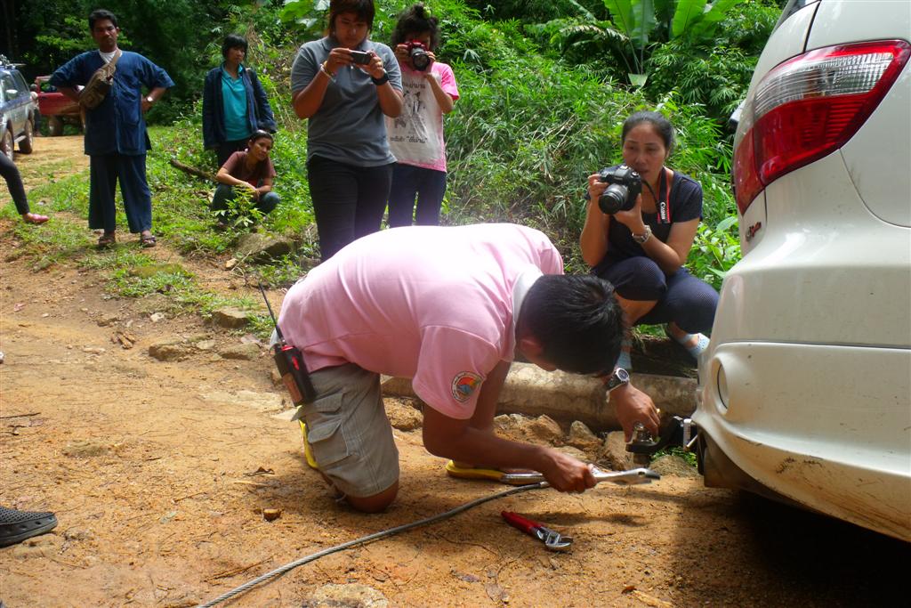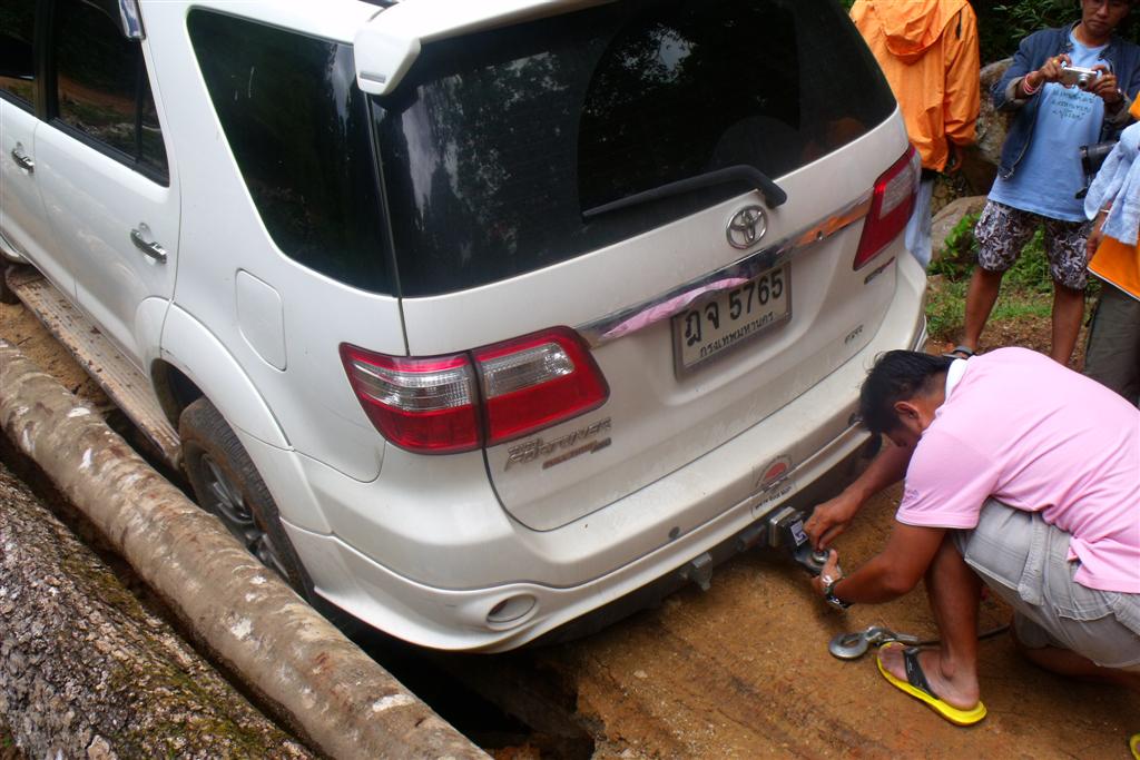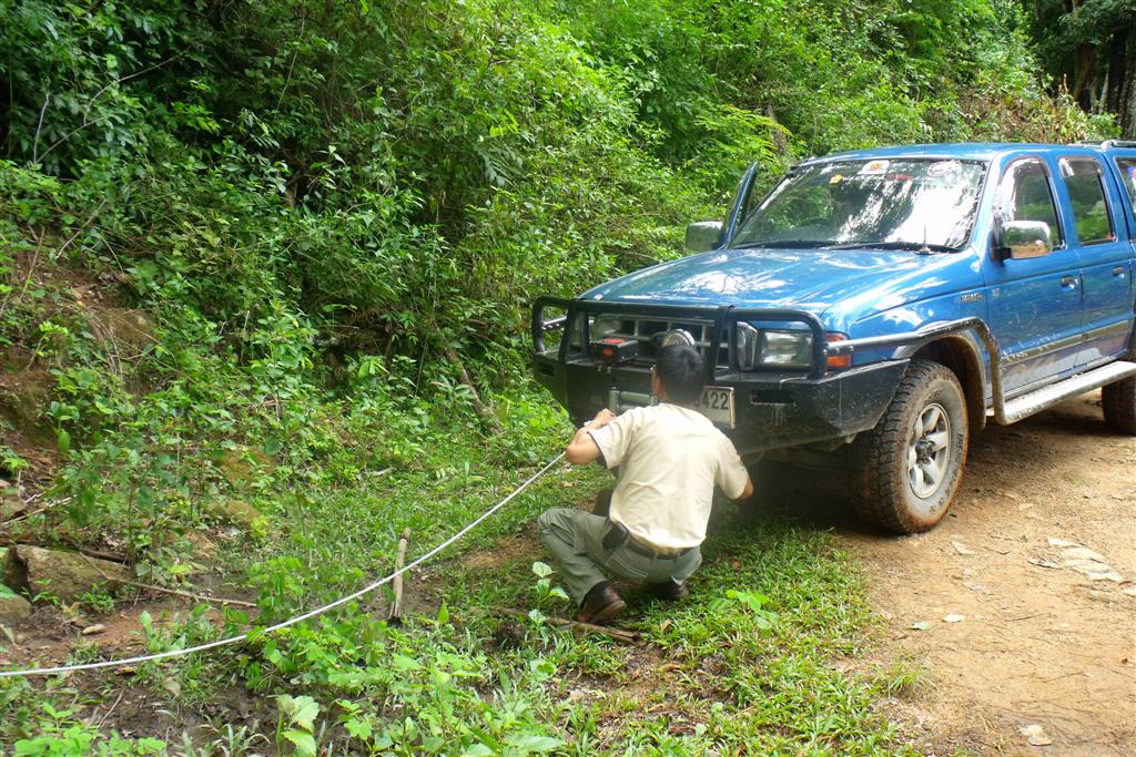 ด้านหน้ารถ มีที่ผูก แต่ ระยะ ลาก ออกทางขวา มีแค่ 1 เมตร ก็จะติดหน้าผา