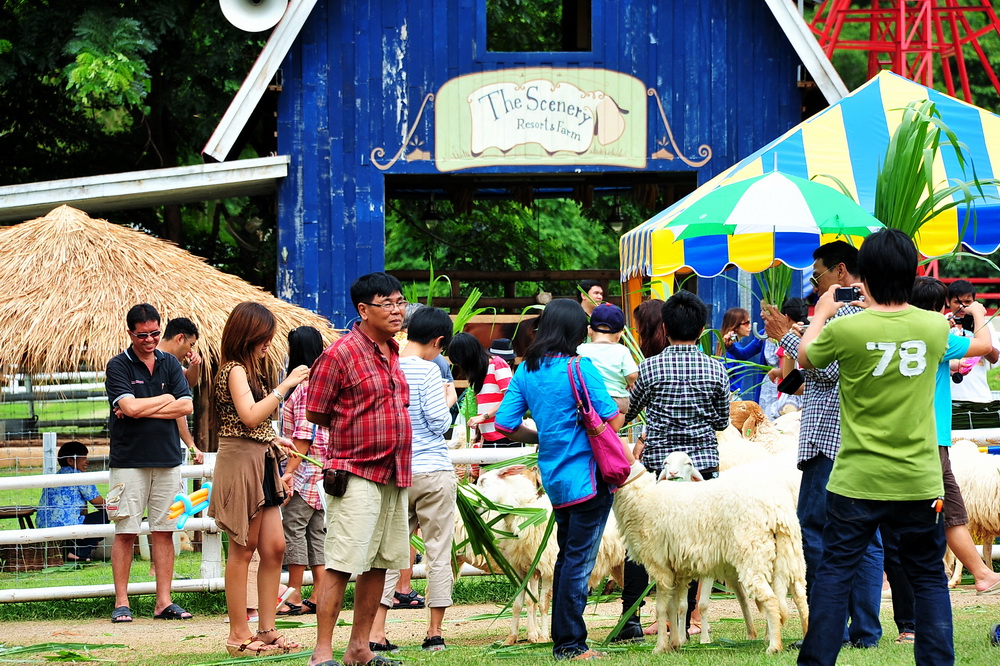 บรรยากาศการให้อาหารแกะครับ วันนี้คนเยอะหน่อยครับ