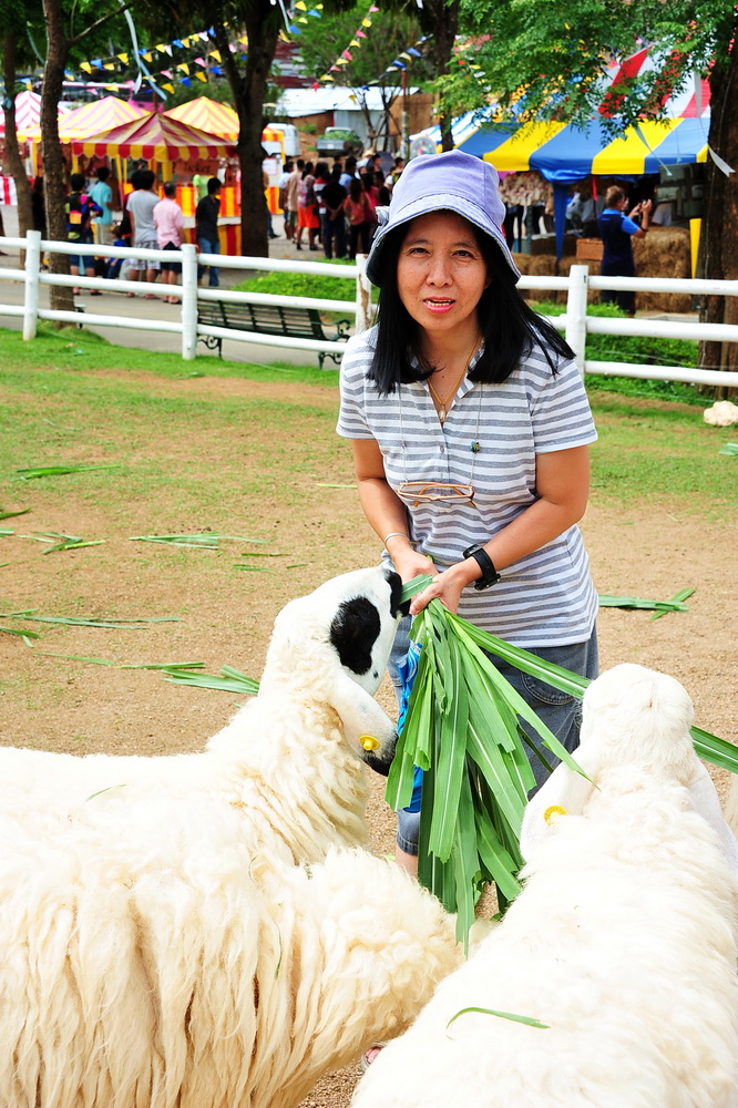เข้าไปด้านในให้หญ้าแกะกินบ้าง ใช้หางตั๋วไปแลกหญ้าให้แกะกินครับ แค่ถือหญ้าแกะก็เดินเข้ามากันเป็นฝูงแล้วอะครับ