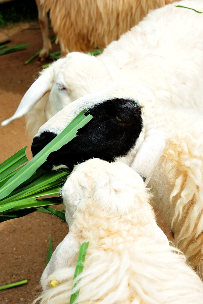 นอกจากแกะแล้วยังสามารถให้หญ้าม้าด้วยก็ได้ครับ
