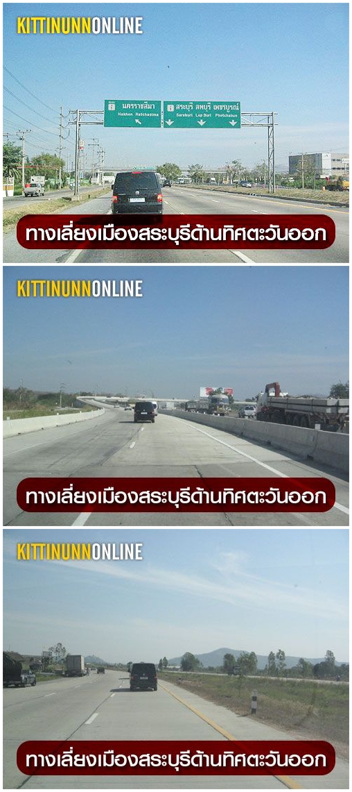 เส้นทาง กทม. - สระบุรี ก่อนถึงสระบุรี ประมาณ 10 ก.ม.(จำไม่ได้) มีทาง เลี่ยงเมือง ซ้ายมือ..........