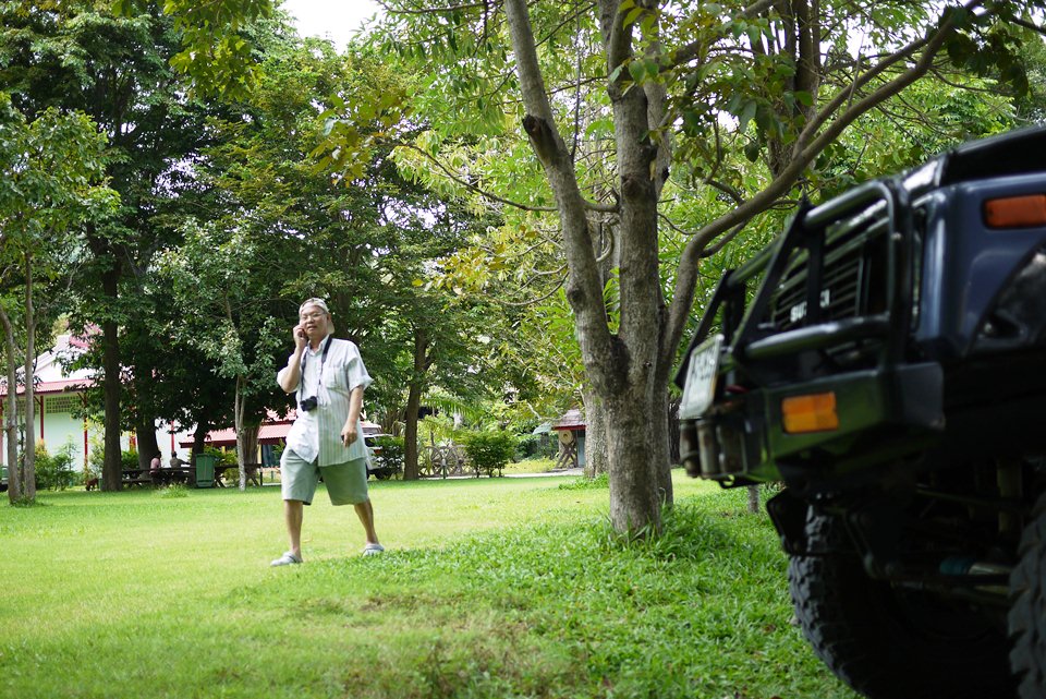 นักเรียนเตรียมตัวเรียนถ่ายรูป อาเจ็กควักขากล้องที่พึ่งถอยออกมากาง